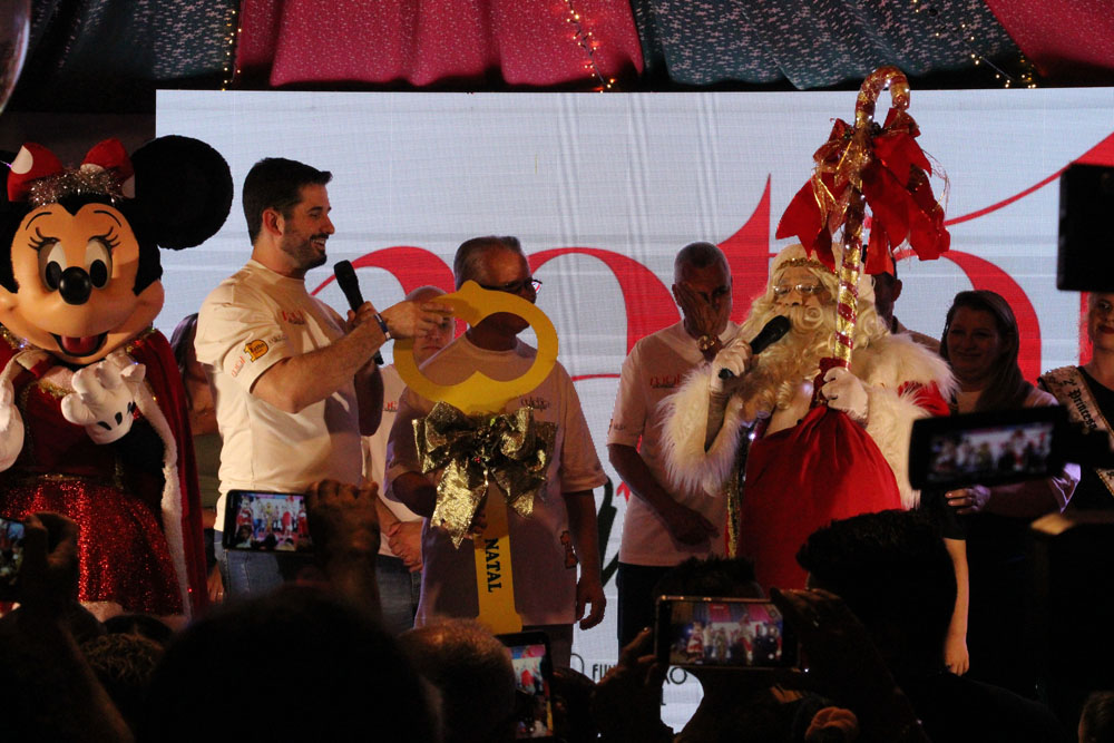 Durante o evento, as crianças esperavam ansiosas pelo Papai Noel. Ele chegou, acompanhado dos seus amigos duendes e dos personagens Mickey e Minnie Mouse, encantando os pequenos que os receberam com muito carinho. O bom velhinho subiu ao palco onde recebeu a chave da cidade das mãos do prefeito, André Vechi, e do presidente da CDL Brusque, Valter Kohler. E depois fez a alegria da criançada com brincadeiras e distribuindo brindes e balas.