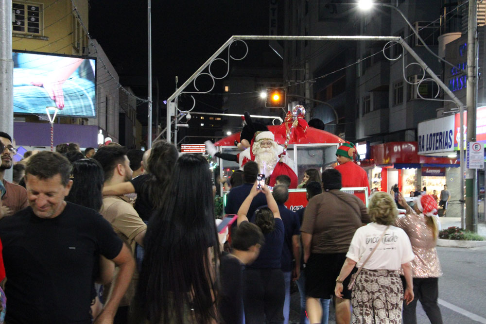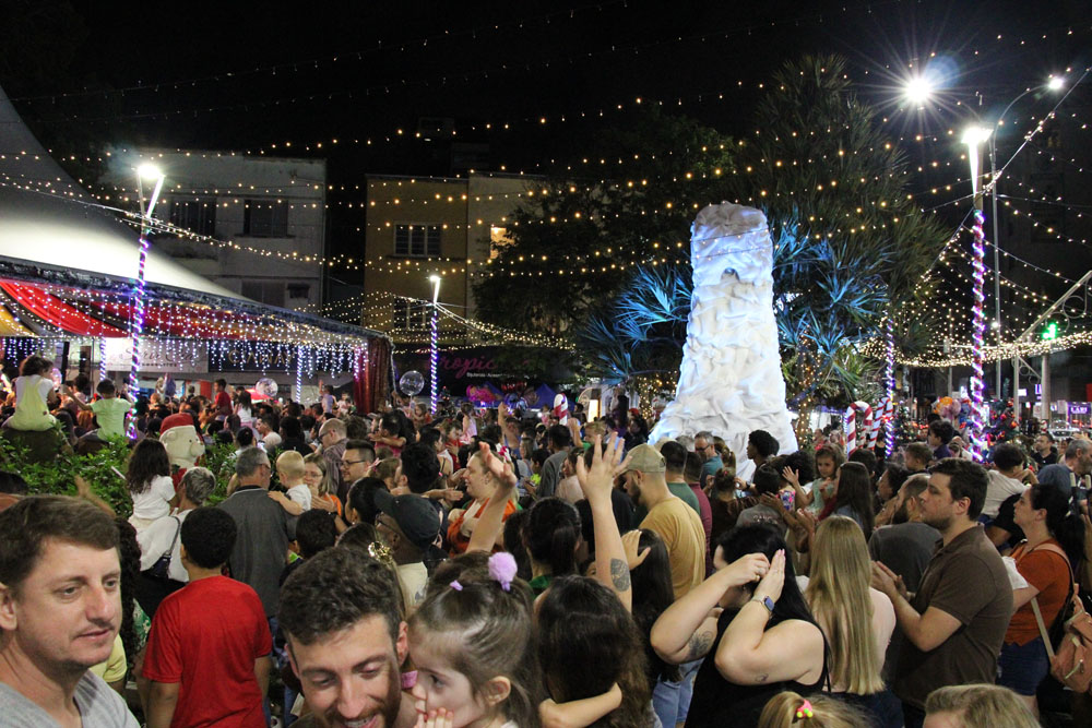 A magia do Natal tomou conta da Praça Barão de Schneeburg na noite de sexta-feira, 5 de dezembro, com a abertura da programação do “Natal Encantado” de Brusque. O evento é uma parceria entre a Câmara de Dirigentes Lojistas de Brusque (CDL) e a Prefeitura e, até o dia 24 de dezembro, terá diversas atrações gratuitas para toda a família.