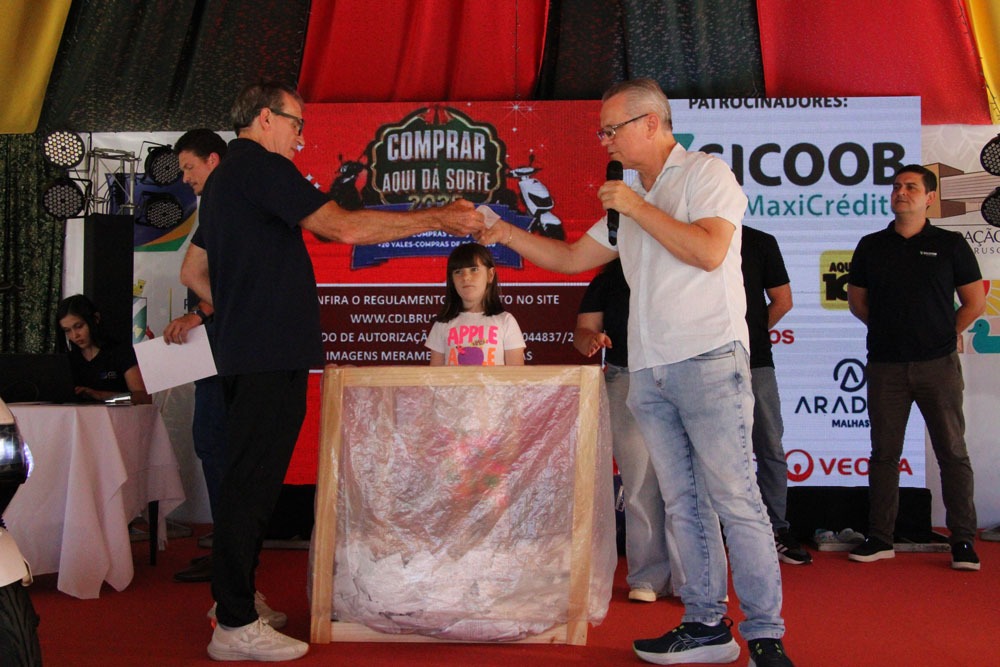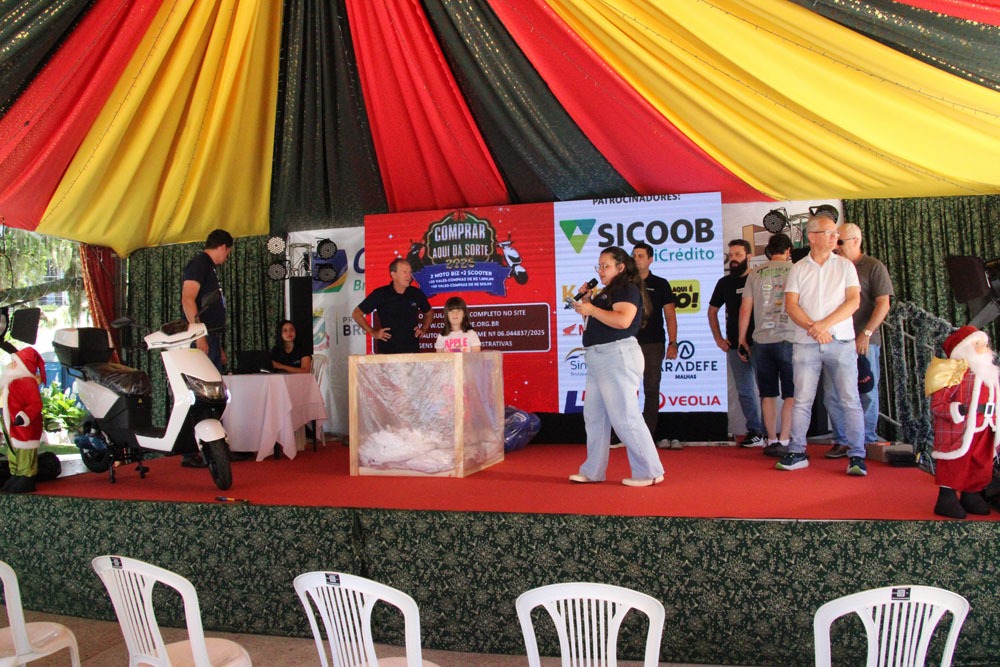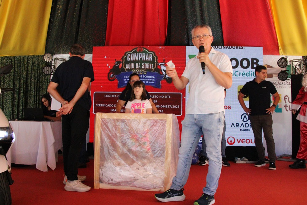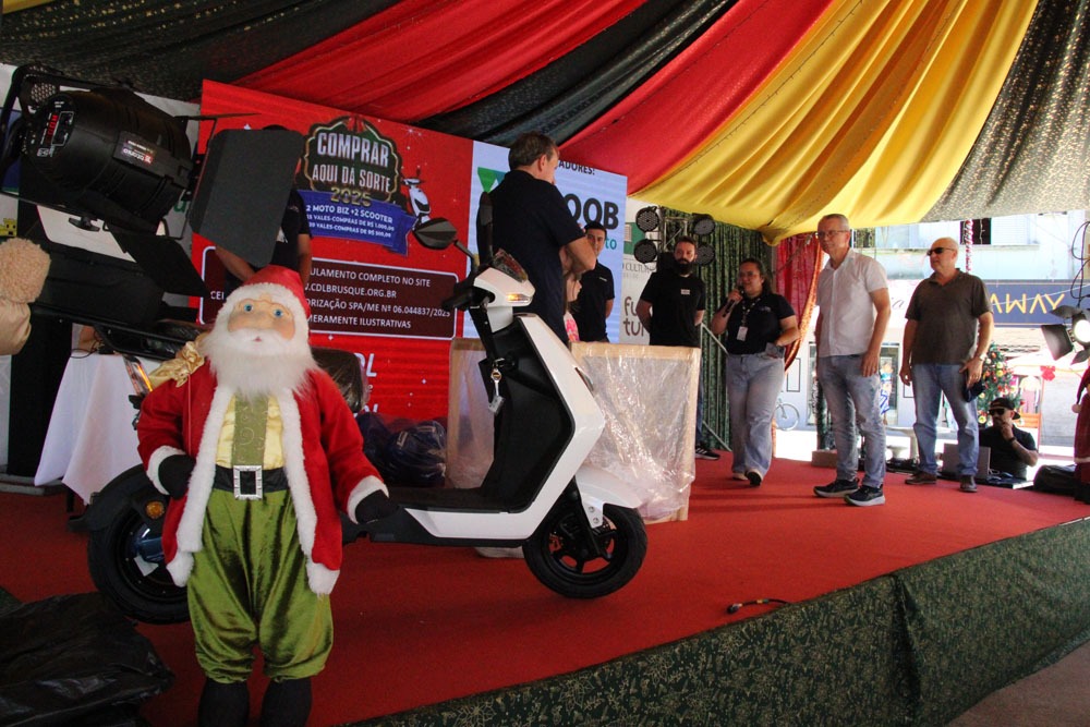 A Câmara de Dirigentes Lojistas de Brusque (CDL Brusque) realizou na manhã de sábado, 6 de dezembro, na praça Barão de Schneeburg, o primeiro sorteio da promoção "Comprar Aqui dá Sorte 2025".