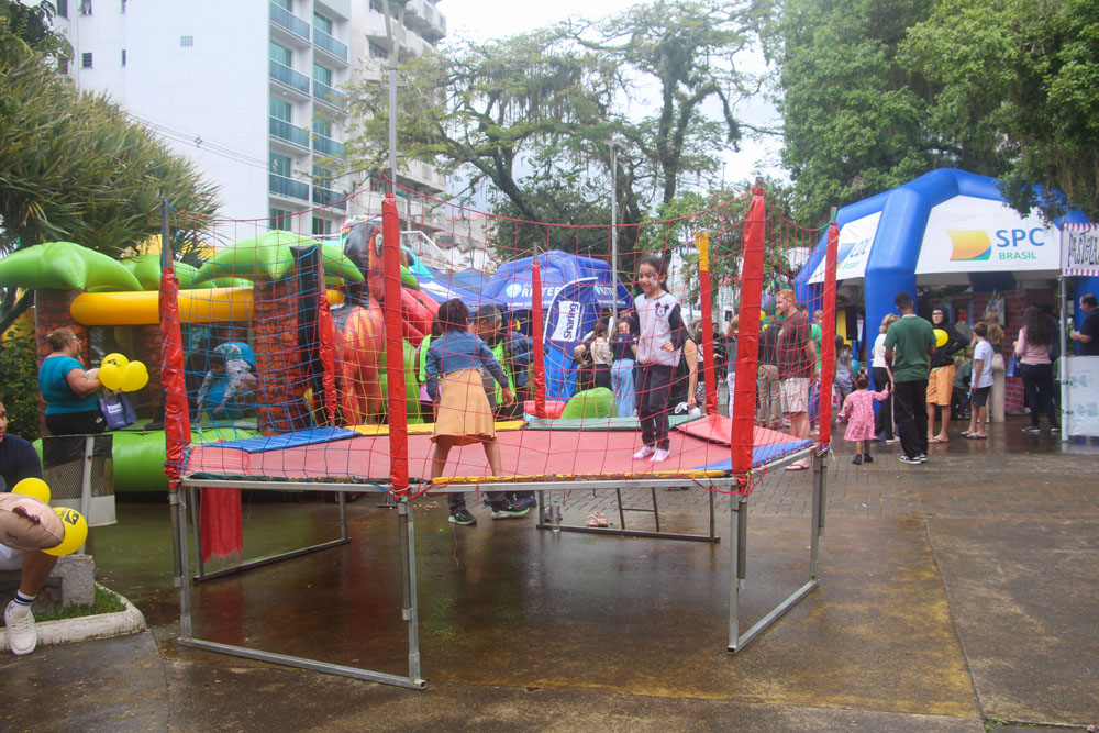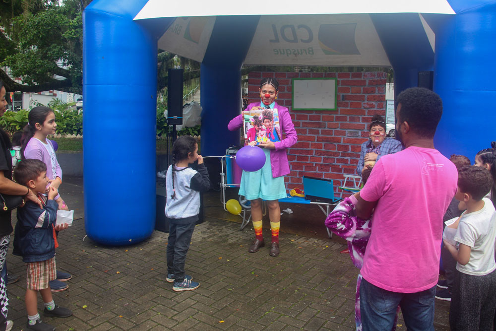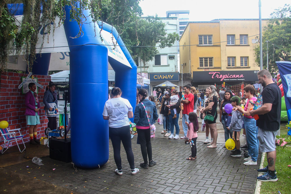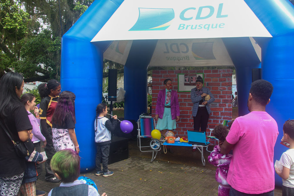 O tempo instável de sábado, 11 de outubro, não impediu que dezenas de famílias marcassem presença na edição mensal do Sábado Fácil, promovida pela Câmara de Dirigentes Lojistas de Brusque (CDL Brusque). Com uma programação especial, alusiva ao Dia das Crianças, pais e familiares aproveitaram para desfrutar das ações na Praça Barão de Schneeburg, levando diversão e atividades recreativas para crianças.