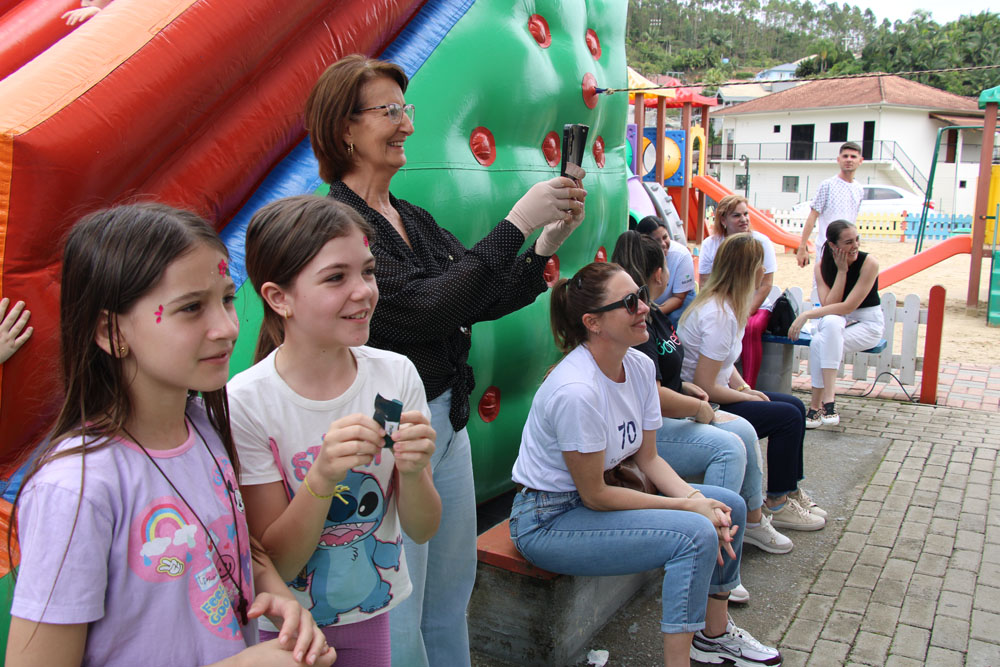 “É muito gratificante realizar a segunda edição do Super Sábado, desta vez especial de Dia das Crianças, reunindo as famílias aqui na praça para desfrutar das atrações. Ficamos muito felizes em ver a grande participação da comunidade e agradecemos os nossos parceiros: Sicoob, os alunos da Escola Padre João Stolte, Zehn Bier e a Ótica Ritter”, falou o coordenador do Núcleo, Daniel Dognini.