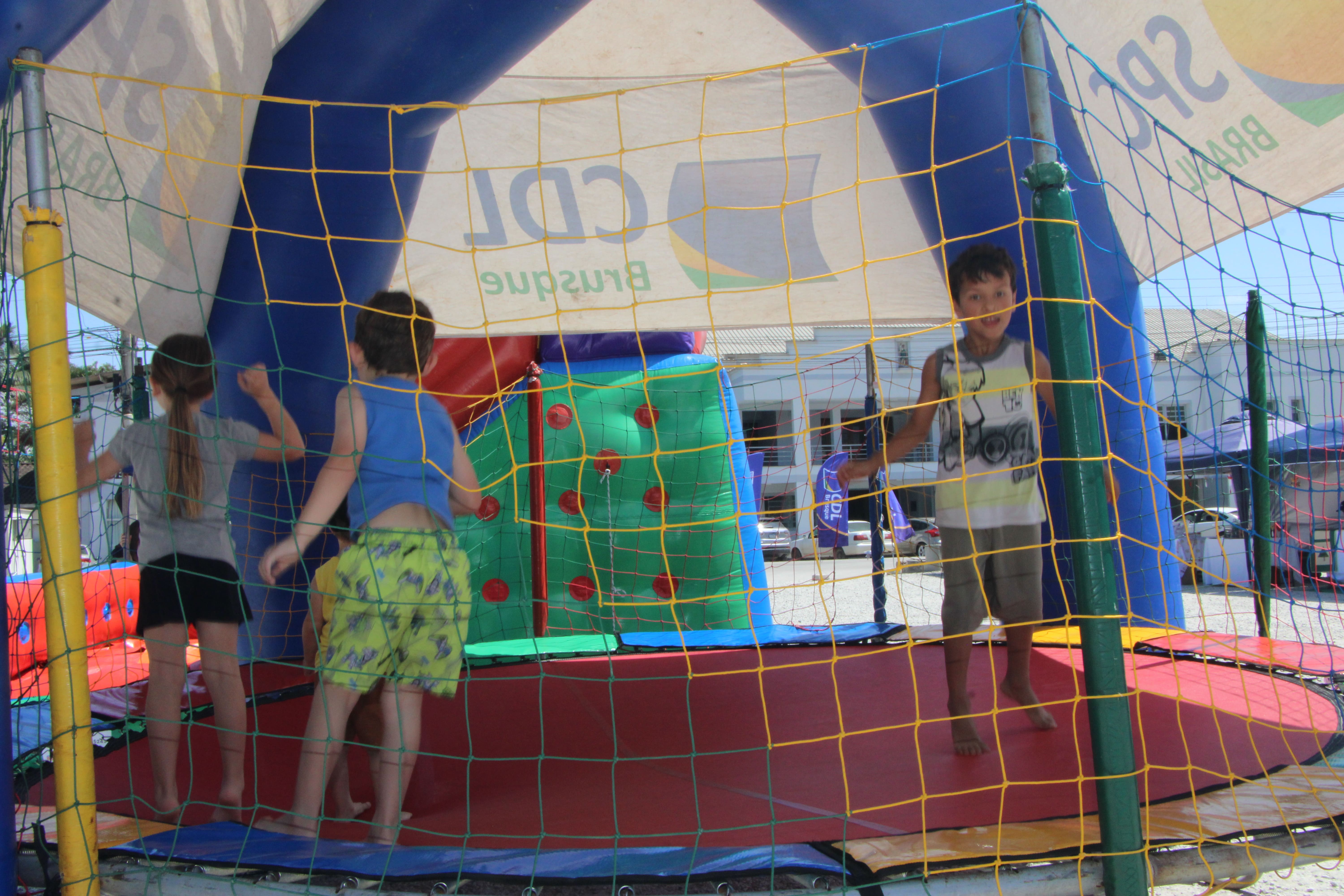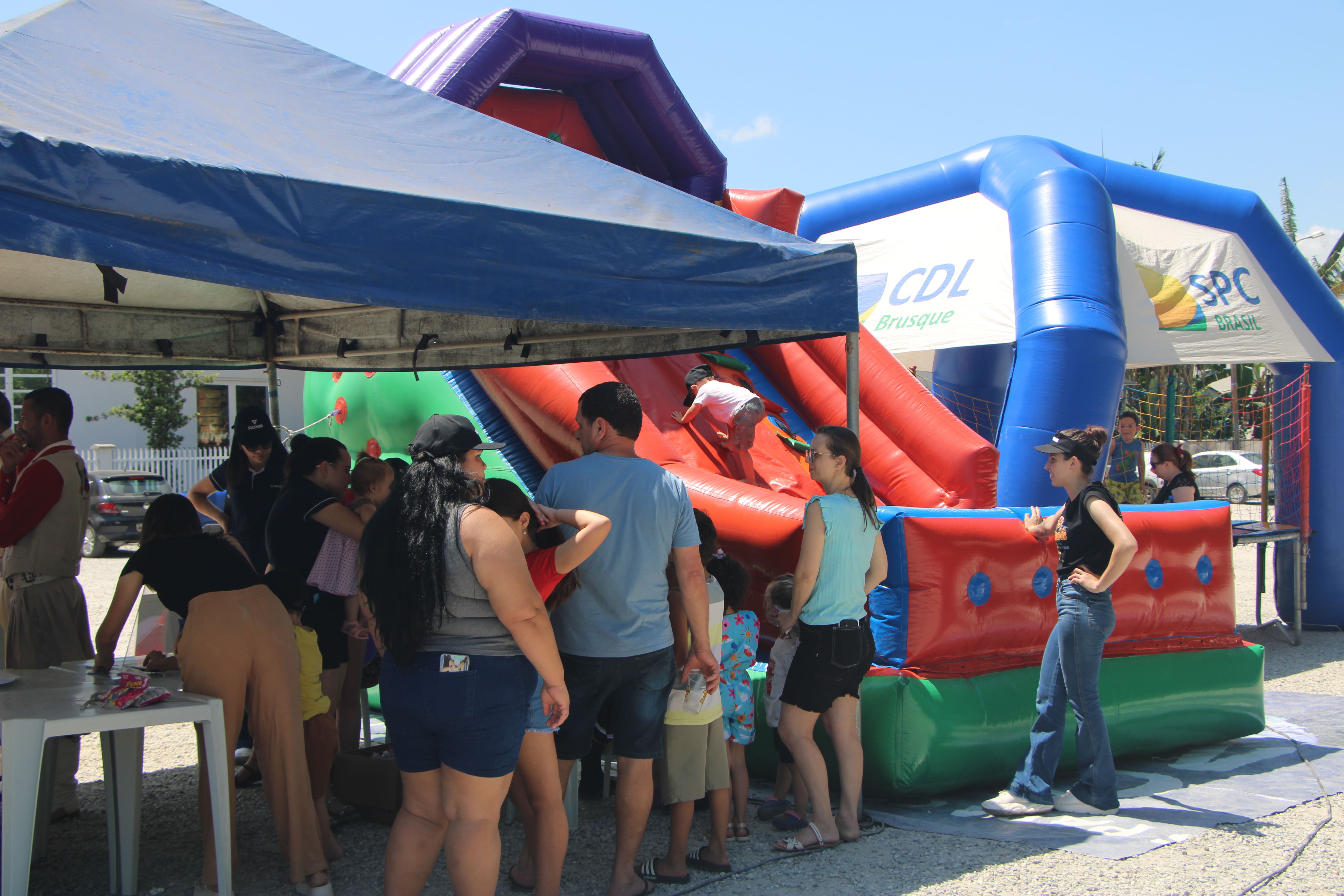 A manhã de sábado, 22 de novembro, foi de muitas atividades no pátio da Paróquia Santa Catarina, durante o Super Sábado do bairro Dom Joaquim, promovido pelo Núcleo de Dom Joaquim da Câmara de Dirigentes Lojistas de Brusque (CDL). A ação reuniu famílias em uma programação gratuita que incluiu cama elástica, pintura facial, brinquedos infláveis, artesanato, teste de acuidade visual, limpeza e manutenção de óculos, além da apresentação de dança gaúcha com o grupo Aliados da Tradição.