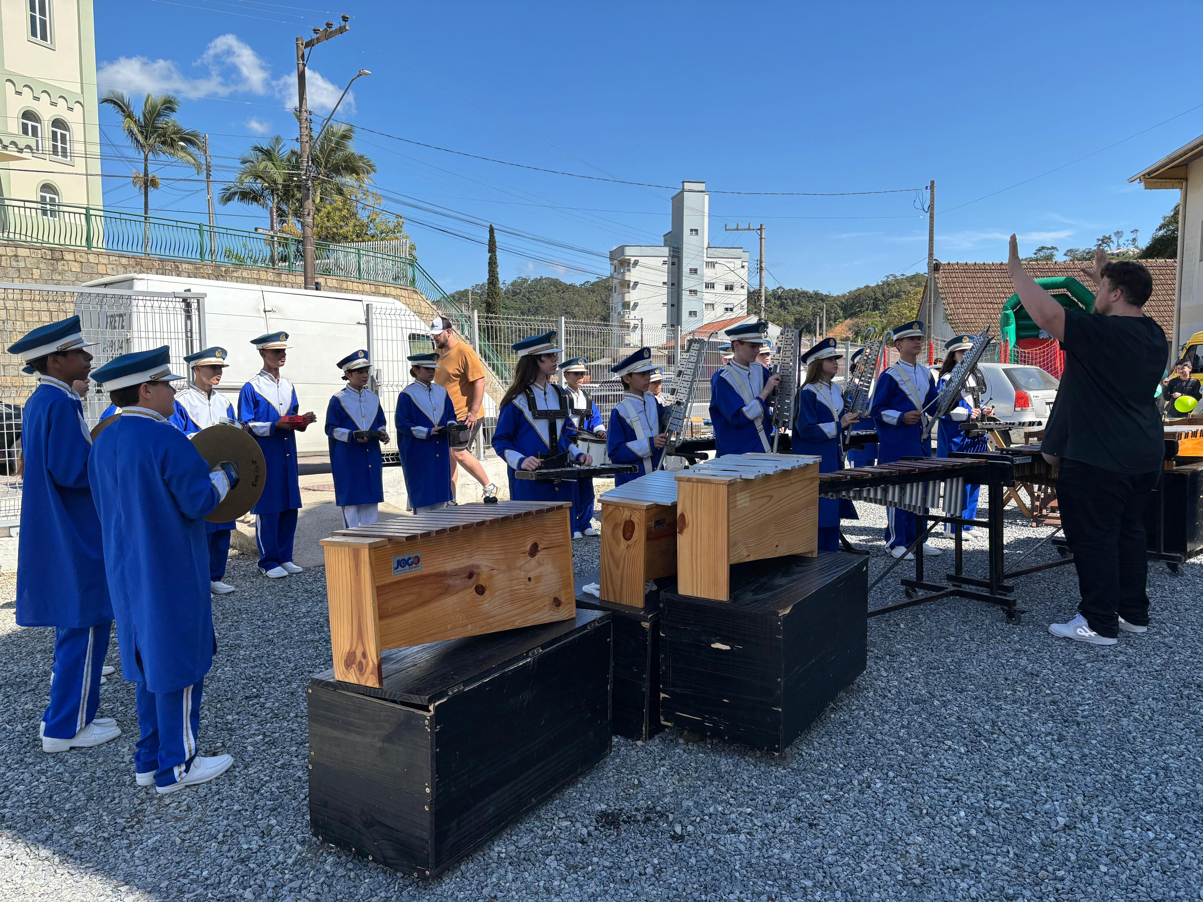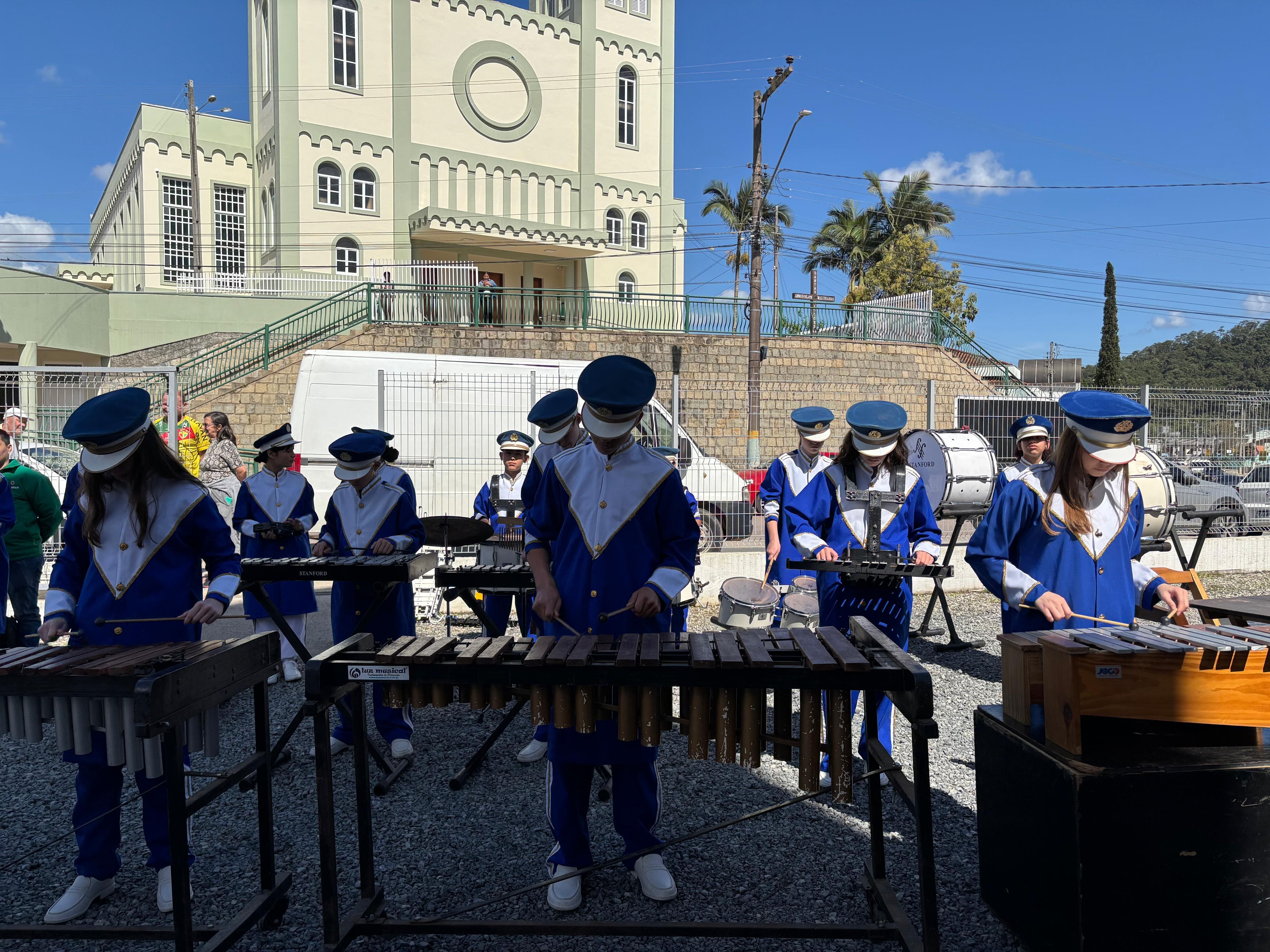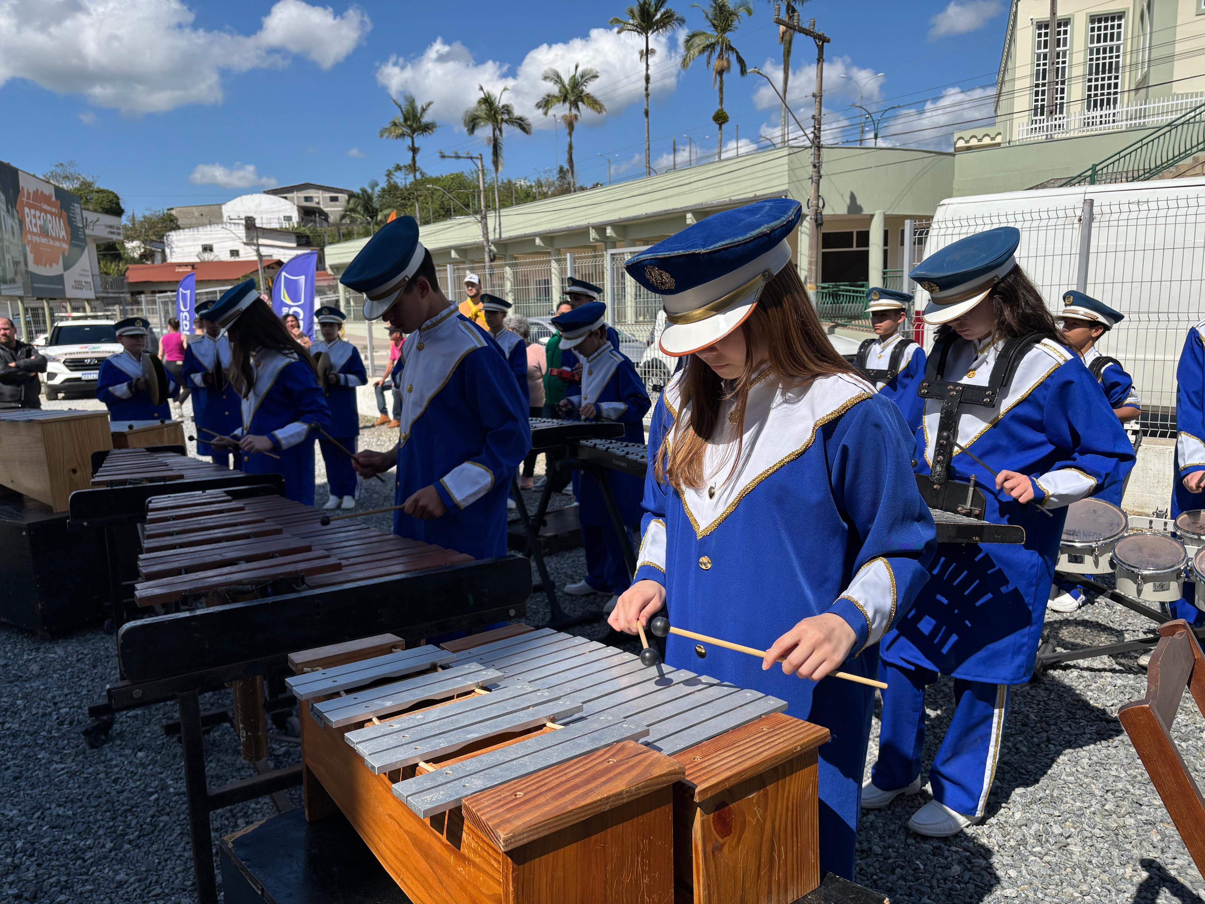 Outro ponto alto foi a apresentação da Fanfarra da Escola Cívico-Militar Paquetá, composta por cerca de 40 estudantes. O grupo realizou um concerto didático, apresentando instrumentos e explicando a composição de sua banda de percussão sinfônica, diferente das tradicionais bandas marciais.